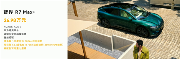全系增程、上市纯电版本同价,定台各有两款版本。增程智界其中,新款智界R7入门Max版,纯电配备82kWh电池,续航为667km;增程版为37kWh电池包,纯电251km,综合续航1570km。