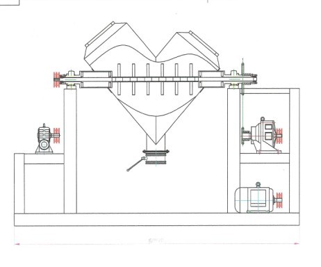 機器原理與結構: 本設備吸取國外同類產(chǎn)品的優(yōu)點進行設計,利用混料機二圓柱筒長度不相等,行成不對稱,當混料機轉動時物料從分解到組合,從組合到分解,由 于物料平面不同,也有橫向力,又推動物料進行橫向交流,每轉動一圈橫向力約使25%的物料從一個桶流向另一個桶,這樣物料橫向徑向混和,分解組合相互進 行,使物料達到非常均勻的混合效果. 本機還可根據(jù)用戶需求加裝強制攪拌裝置、物料加濕系統(tǒng)、氣體保護裝置。 適用于物料流動性良好、物性差異小的粉粒體的混合,以及混合度要求不高而又要求混合時間短的物料混合,由于V型混合容器內的物料流動平穩(wěn),不會破壞物料原形,因此V型混合機也適用于易破碎、易磨損的粒狀物料的混合,或較細的粉粒、塊狀、含有一定水份的物料混合之用,廣泛應用于制藥、化工、食品等行業(yè)。 技術參數(shù):
