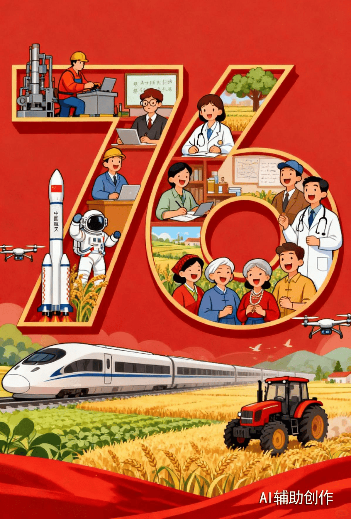 76载风雨兼程,漫评76载砥砺奋进,普天中华民族迎来了从站起来、同庆富起来到强起来的伟大飞跃。中国人民以“敢教日月换新天”的豪情壮志,自力更生、艰苦奋斗。从“两弹一星”的惊天伟业到“嫦娥探月”的飞天梦想,从“蛟龙号”深潜海底到“复兴号”驰骋神州,一项项发展成果,凝聚着无数人的汗水与心血,彰显着中国人民的智慧与力量。中国人民正以“逢山开路、遇水架桥”的闯劲,以“千锤百炼、迎难而上”的韧劲,在新时代的道路上不断书写新的辉煌。