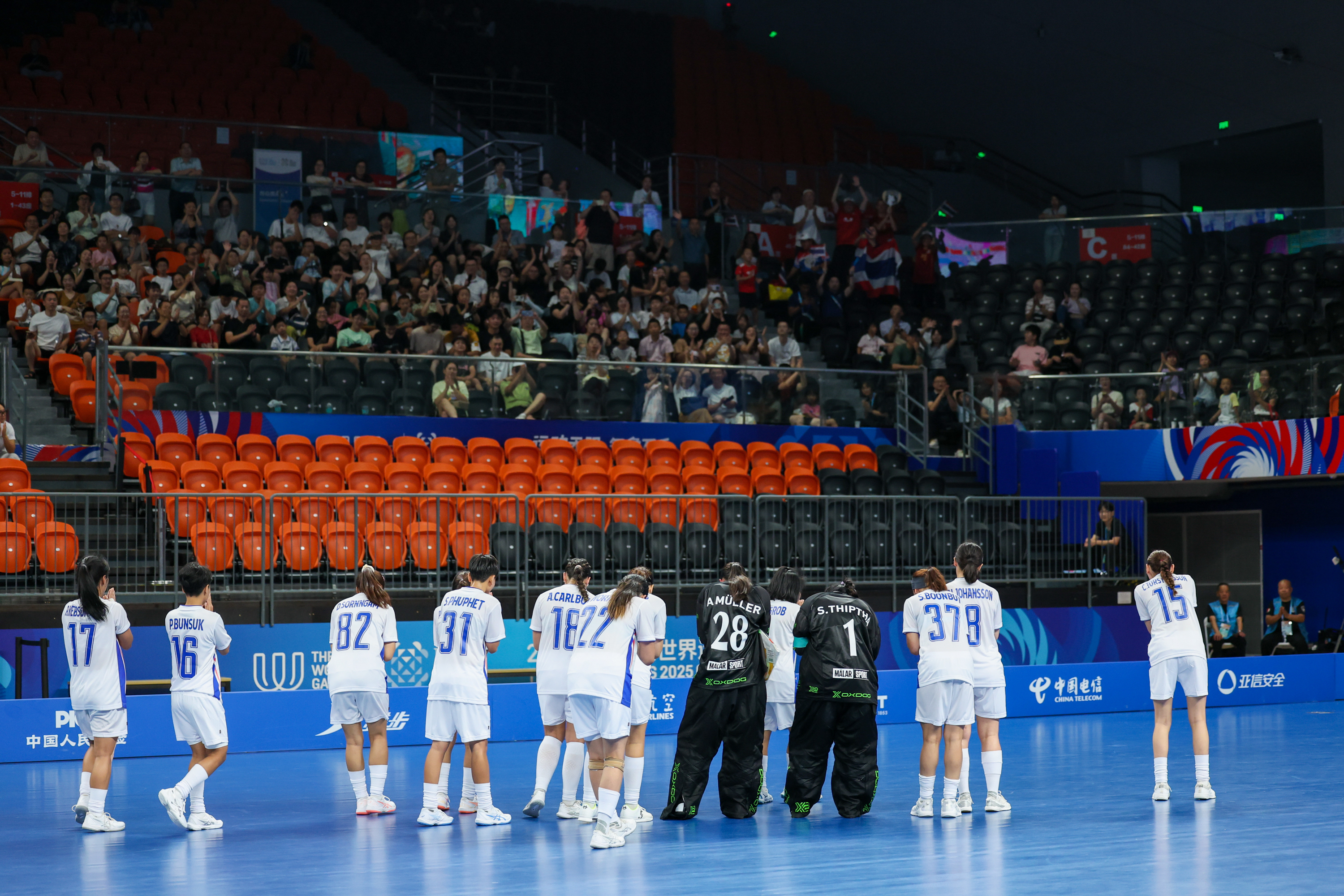↑泰国队球员向全场观众致谢。